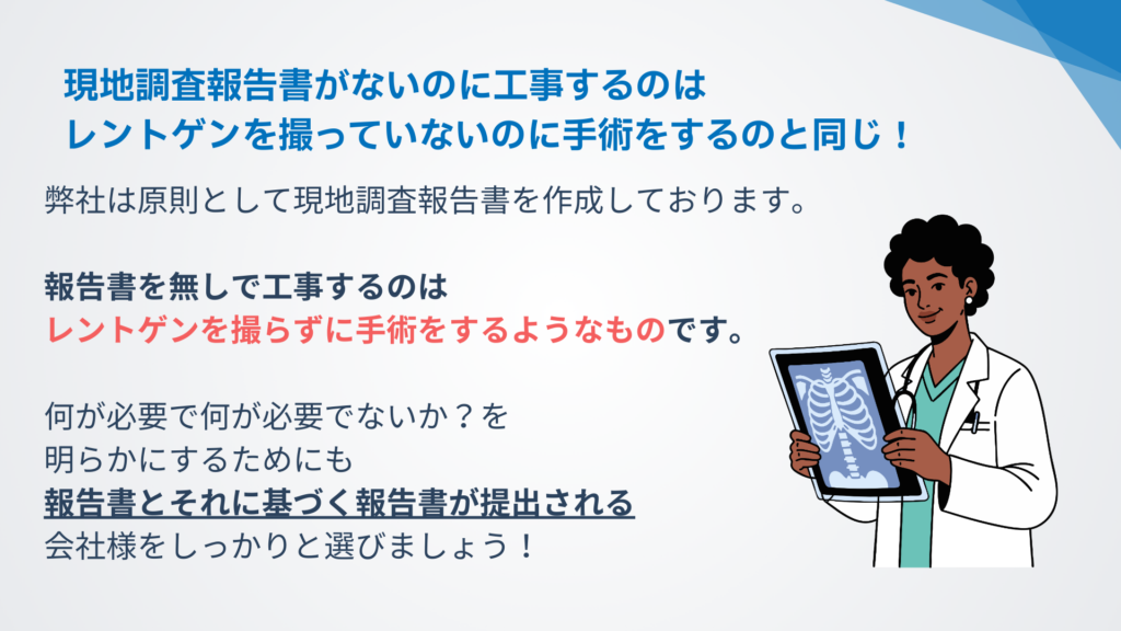 を行いました。 ハウスメーカーや訪問業者からは必要以上の工事を提案されることも少なくありません。