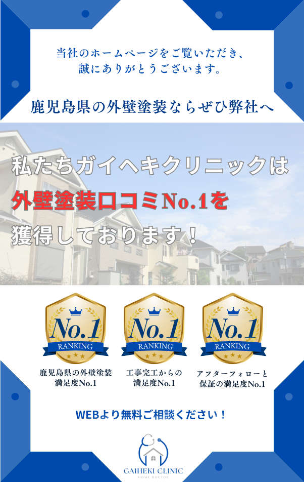 鹿児島県の外壁塗装なら満足度No.1のガイヘキクリニック鹿児島店(株式会社ウエミツ)へ